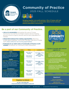 Tempe Community Council’s CoP brings together nonprofit partners, City of Tempe staff and community volunteers in conversation about human services priorities and practice.